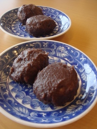 いつものキッチンレクでは、皆さん褒めて下さるのですが・・・「美味しいわね。これならお店が開けるわよ」など。今回は私のほうから「おはぎ屋さんになれますか?」とお聞きしましたら、思いっきり吹き出され、「無理よ!」と笑われました(苦笑)。朝から小豆を炊きましたので、市販のあんことはやっぱり味が違います。味は美味しかったのですが、あんの水分飛ばしが足りなかったようです。なんとか写真のように仕上がりましたが・・・